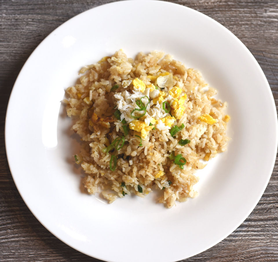 Healthy quinoa fried rice with shrimps, corn, carrot and peas